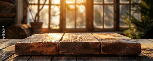 Rustic wooden podium with a natural finish, highlighted by warm, natural light.