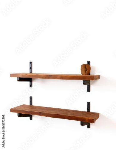 Rustic wooden shelf, isolated on white Perfect for display, simple, mockup