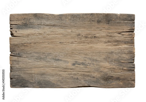 Rustic Wooden Signboard on White - Weathered wooden sign, aged texture, blank space, rustic charm, natural wood grain. Perfect for message, announcement, or design element