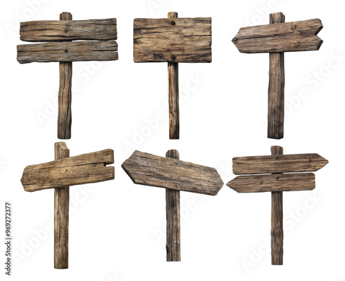Rustic wooden signposts set on transparent background for design projects or decor use