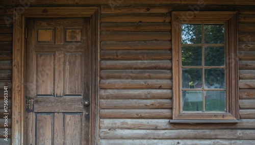Rustic wooden wall with door and window textures