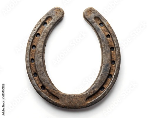 Rusty horseshoe, symbol of good luck, isolated on white.