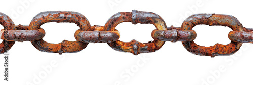 Rusty metal chain links with weathered texture against a white background