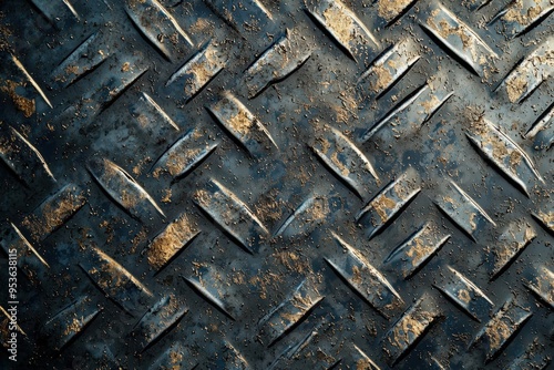 Rusty Metal Diamond Plate Texture with Weathered Blue and Brown Colors