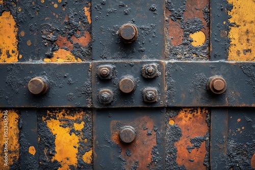 Rusty Metal Door Bolts Texture. Weathered Industrial Age Relic with Chipped Paint and Steel Patina Background