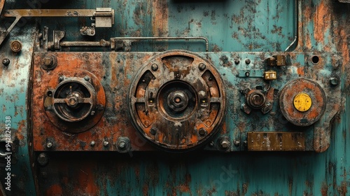 Rusty Metal Panel with Industrial Machinery Components