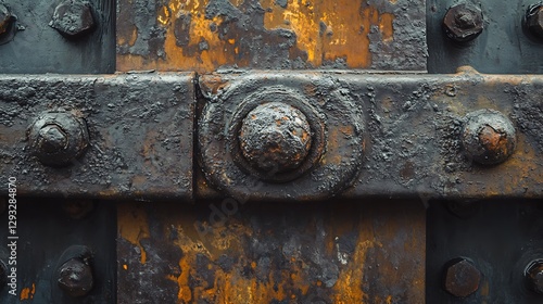 Rusty Metal Plate Details with Aged Texture and Rivets Close-up