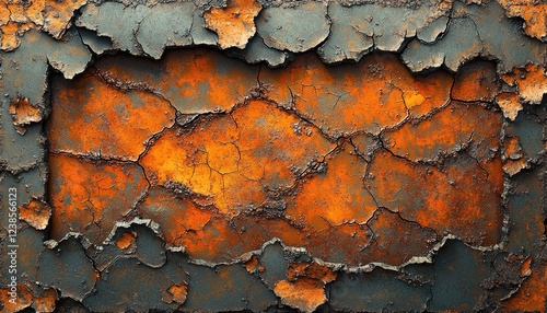 Rusty Metal Surface With Cracked Orange Paint