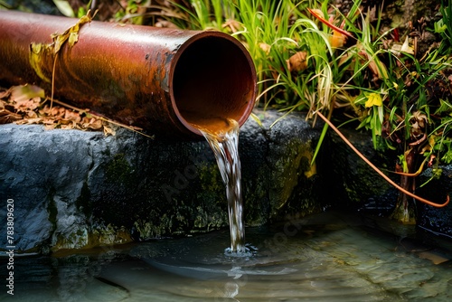 Rusty pipe oozes water, a relic of yesteryears, flows gracefully