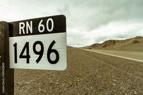 Ruta Nacional 60 (Catamarca, Argentina) en camino hacia Chile con un automóvil en el fondo.