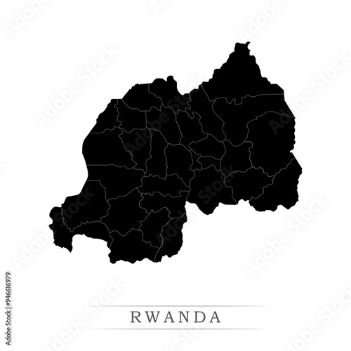 Rwanda map on white background vector. Administrative regions of Rwanda