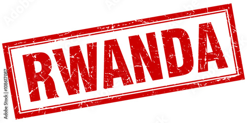 Rwanda red square grunge stamp on white
