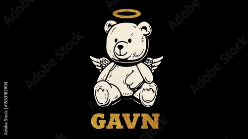 sacred slogan with bear doll angel with golden halo vector illustration on black background, no logos, no brands
