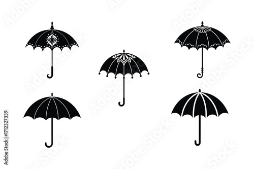 sacred umbrella bundle set linocut style silhouette vector illustration on white background