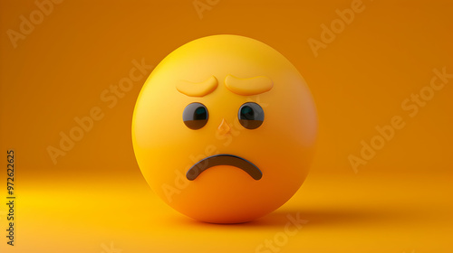 Sad emoji, emoticon, emotion, face, sad, cry, expression, communication, icon, sign, symbol, sadness, illustration, 3D rendering, tear, pout, Generative IA