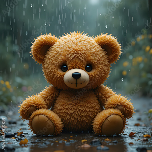 Sad Teddy Bear in the Rain