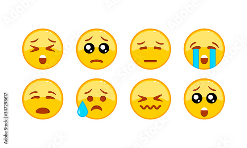 Sad, upset emoji icon set. Smiley, emoticons. Facial expression on isolated white background. EPS 10 vector
