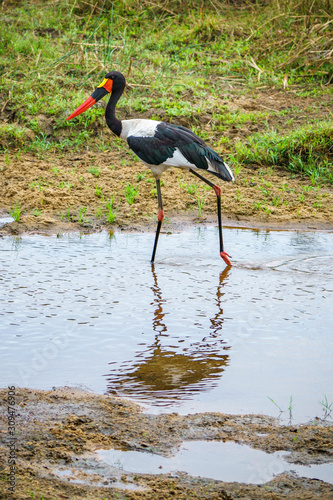 saddle-billed stork respectively saddlebill in kruger national park, mpumalanga, south africa
