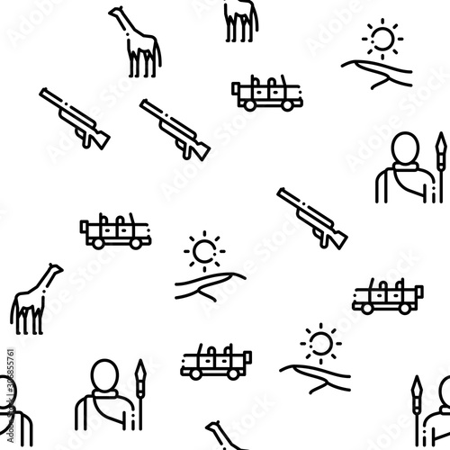 Safari Travel Seamless Pattern Vector Thin Line. Illustrations