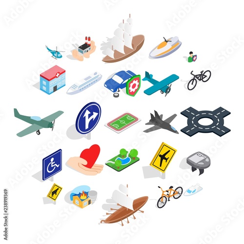 Safe transport icons set. Isometric set of 25 safe transport vector icons for web isolated on white background
