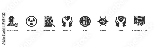 safety banner web icon vector illustration concept with icon of consumer, hazards, inspection, health, eat, virus, safe and certification