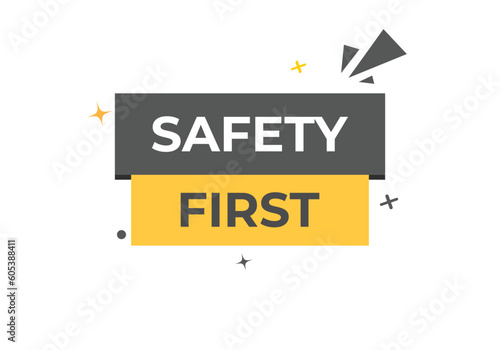 Safety First Button. Speech Bubble, Banner Label Safety First