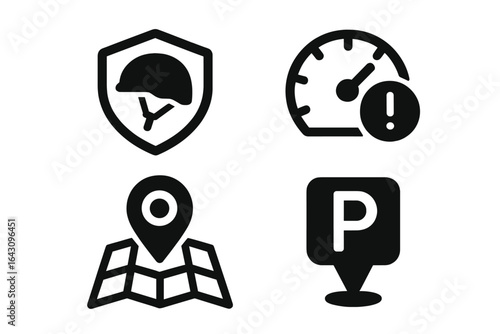 Safety icons representing navigation, alerts, and location markers in a modern design for apps and signage purposes