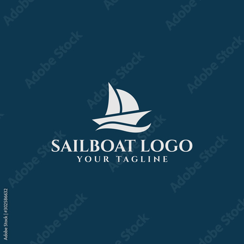 Sail Boat and Sea Wave, Sailing Yacht, Nautical Logo Design