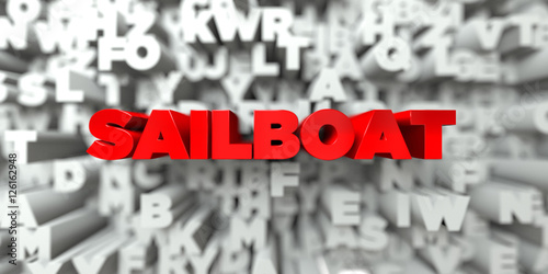 SAILBOAT - Red text on typography background - 3D rendered royalty free stock image. This image can be used for an online website banner ad or a print postcard.
