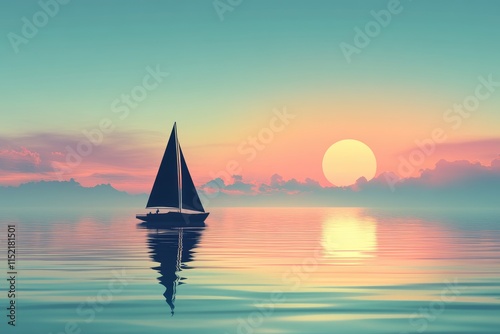 Sailboat at Sunset Peaceful Ocean Scene