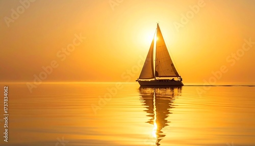 Sailboat peacefully on golden waters at sunset