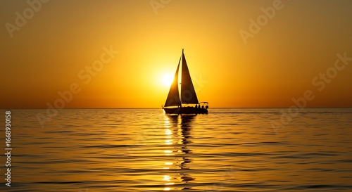 Sailboat Silhouette Against a Golden Sunset.