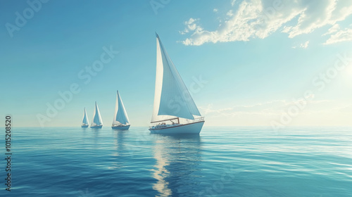 Sailboats cruising on calm ocean waters