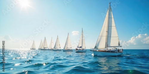 Sailboats Gleaming Under Summer Sun A Picturesque Daytime Scene of Calm Seas and Nautical Adventure