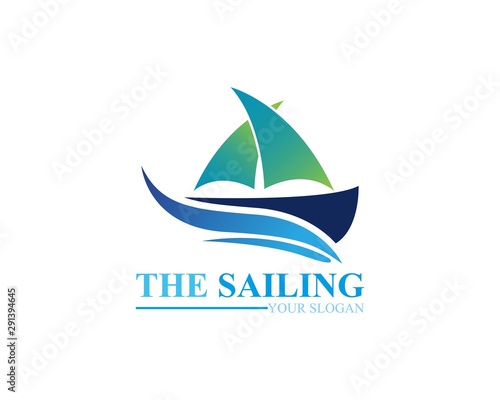 Sailing boat ocean wave logo template vector