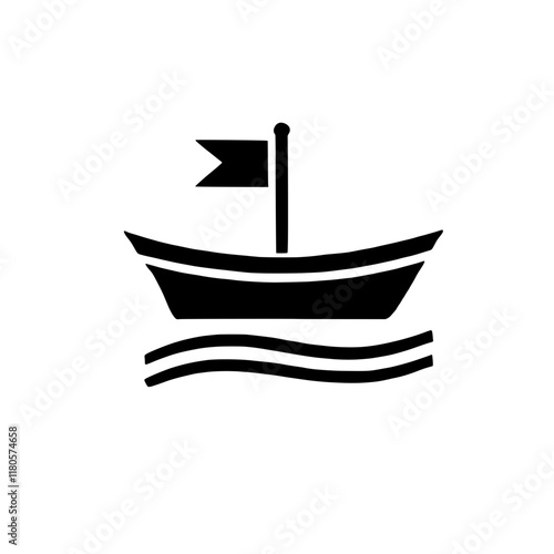Sailing Icon: Simple Boat with Flag Icon