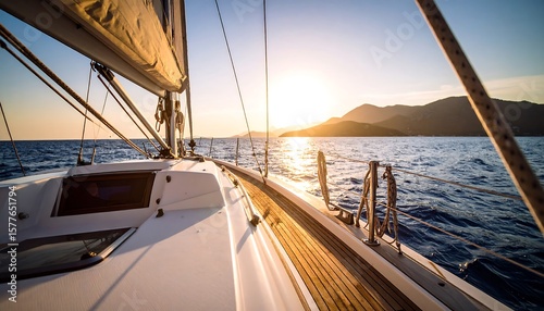 Sailing yacht at sunset over water