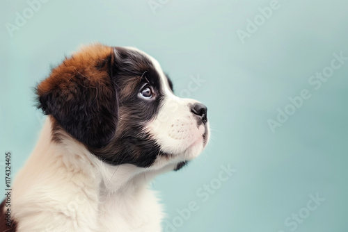 Saint Bernard Puppy Looking Tenderly at Camera, Adorable Portrait of a Loving Family Pet Ready for Adoption