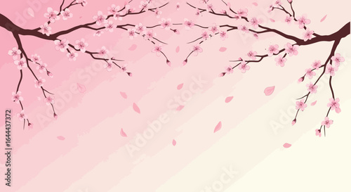 Sakura blossoms background with falling petals creating a serene atmosphere filled with gentle beauty and spring season
