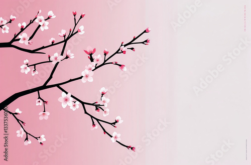 Sakura branches adorned with delicate blossoms against a soft pastel background offering space for textual content