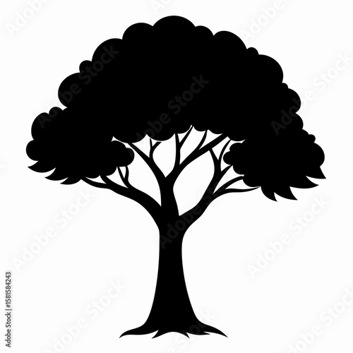 Sal Tree Silhouette on White Background
