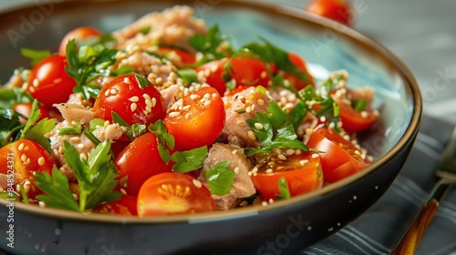 Salad from canned tuna with tomatoes and Brot. Generative Ai