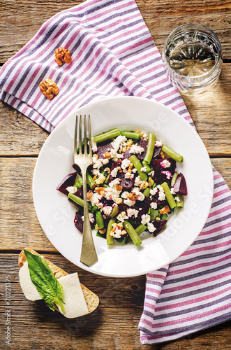 salad with roasted beets, green beans, walnuts and goat cheese