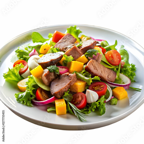 salad with vegetables and meat on white