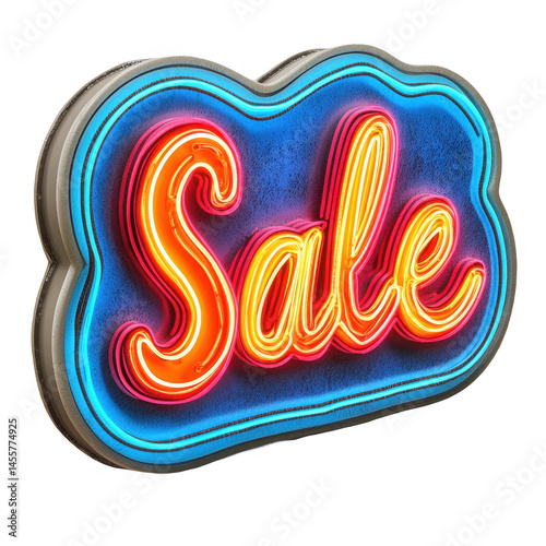Sale neon sign promotion retail discount offer advertising marketing shop on transparent background