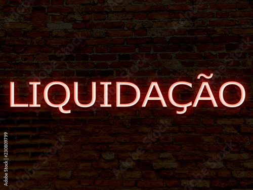 Sale Off (in portuguese) red neon sign. Background texture of rustic brick wall old red orange
