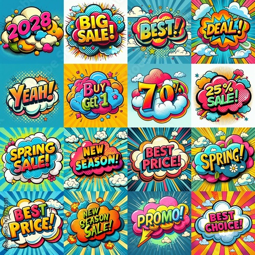 Sale stickers pop art style. AI generated illustration