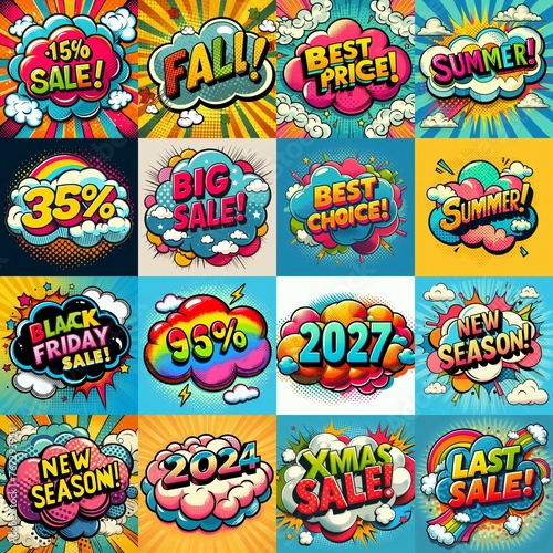Sale stickers pop art style. AI generated illustration