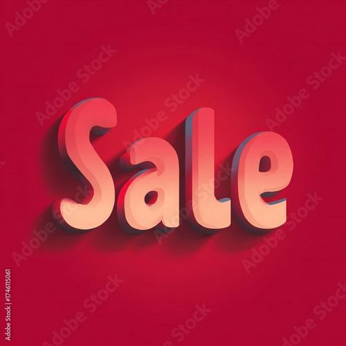 Sale text in bold letters with shadows on a red background for promotional marketing and advertising