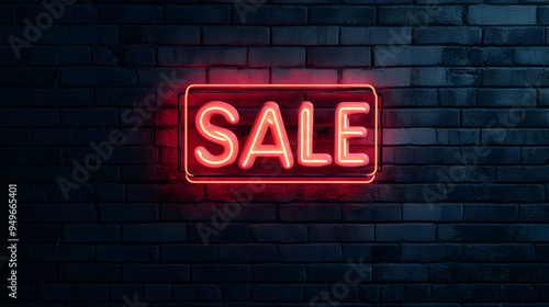 SALE written in a neon sign, glowing brightly against a dark brick wall.